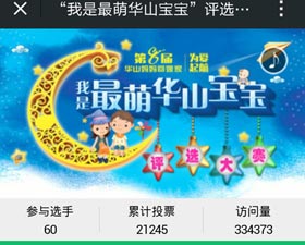 “我是最萌华山宝宝”评选大赛将6月13日——7月3日,开始为期20天的投票。现在评选大赛只剩下3天了,严格来说其实之剩下2天多了。届时将根据投票结果选出10个萌宝,将获得送子鸟成长援助金。